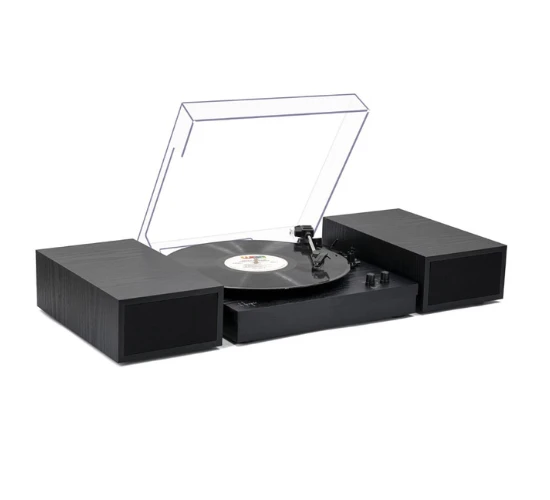 פטיפון עם 2 רמקולים סטריאו לשמיעת התקליטים הניתנים להעמדה בצורות שונות בעוצמה 5W כל אחד. תומך בתקליטים ב 3 גדלים: 7,10,12 אינץ'. יציאת RCA מאפשרת חיבור ישירות לרסיבר, רמקול מוגבר או מחשב. תיבת התהודה מעץ רטרו נוסטלגי, המחט קרמית לשמירה על התקליטים ללא שריטות. כיסוי מורכב למכשיר למניעה של הצטברות אבק.