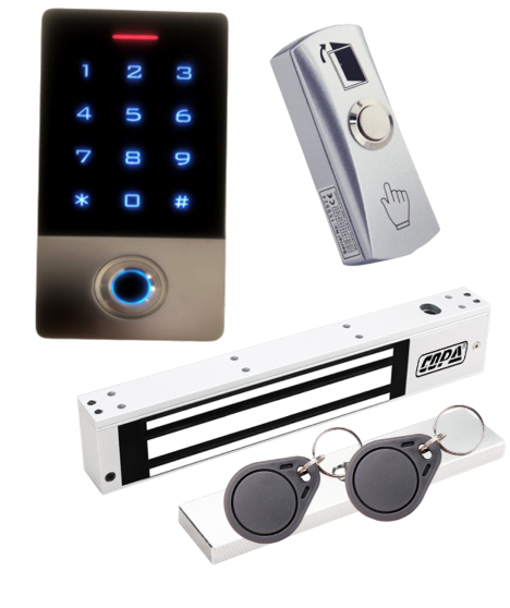 קיט קודן קורא טביעת אצבע + לחצן מתכתי + אלקטרו מגנט 280 ק"ג + 2 צ'יפים וספק כוח