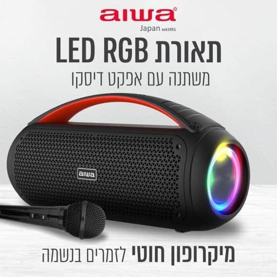 רמקול בלוטוס נייד מוגן מים עם שלט ומיקרופון aiwa NARA-2